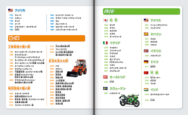 そして世界の国々で働く車の数々を一挙に掲載した図鑑です。 日本の軽自動車から稀有なスーパーカー、そしてこれからの主流になりつつあるBEVまで、 掲載する車両は全て編集時における最新のモデルを収集しています。 乗用車は「アジア」と「ヨーロッパ・アメリカ」の地域に分け、 各地域の国とメーカーごとに分類して掲載。 働く車は、それぞれが活躍する場や用途に分けて掲載しています。 対象年齢:5歳〜小学生 |