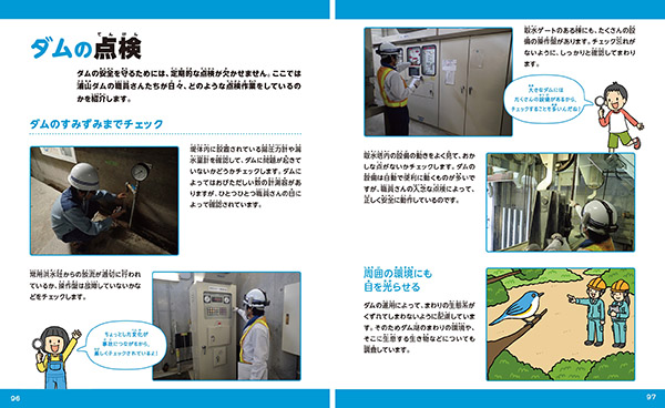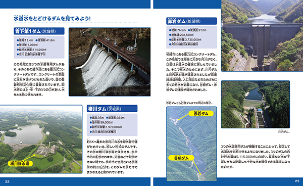 ![]() ![]() ![]() 【目次】 【概要】 河川をせきとめ水をためることで、洪水をふせいだり、生活や農業に必要な水をあたえてくれるダム。そんなダムにはどんな種類や役割があり、ダムの中はどのようになっているのか、豊富な写真や図解とともに解説しています。日本最古のダム型式のため池である狭山池や、日本一の高さを誇る黒部ダムなど、100基以上のダムを掲載。ダムではたらく人の仕事や、ダムができるまで、ダムの水が浄水場で水道水になるまでの流れも学ぶことができます。