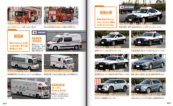 そして世界の国々で働く車の数々を一挙に掲載した図鑑です。 日本の軽自動車から稀有なスーパーカー、そしてこれからの主流になりつつあるBEVまで、 掲載する車両は全て編集時における最新のモデルを収集しています。 乗用車は「アジア」と「ヨーロッパ・アメリカ」の地域に分け、 各地域の国とメーカーごとに分類して掲載。 働く車は、それぞれが活躍する場や用途に分けて掲載しています。 対象年齢:5歳〜小学生 |